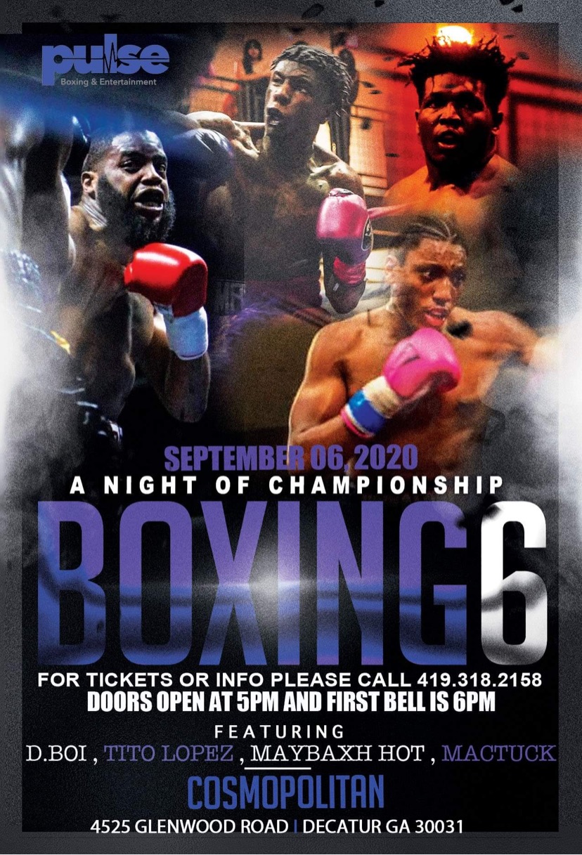 « All Events This event has passed. Night of Championship Boxing 6 Event Navigation « Labor Day Kick-Off Black Pride » book a table I agree that my submitted data is being collected and stored. For further details on handling user data, see our Privacy Policy Book the table + Google Calendar+ iCal Export Details Date: September 6, 2020 Time: 5:00 am - 5:00 pm Cost: $30 Organizer Pluse Phone: 419.318.2158 Venue Cosmopolitan at Glennwood 4525 Glenwood Rd SE Decatur, GA 30032 United States + Google Map $30
